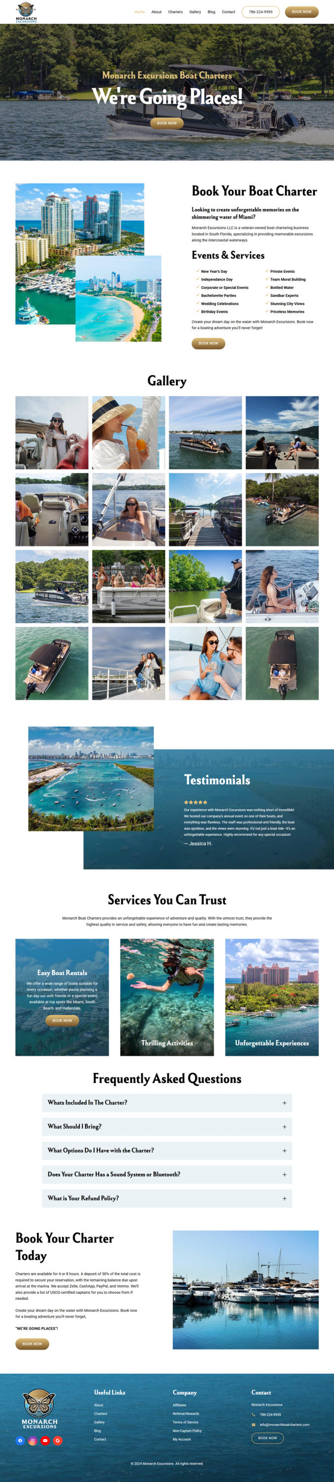 The website is fully responsive, ensuring seamless performance across all devices, from desktops to smartphones. Navigation was structured to guide users quickly toward booking actions, with strategically placed call-to-actions and intuitive layouts. In addition, SEO best practices were implemented throughout the site, including keyword-optimized service pages and content structure tailored to improve visibility for competitive boat charter website searches.