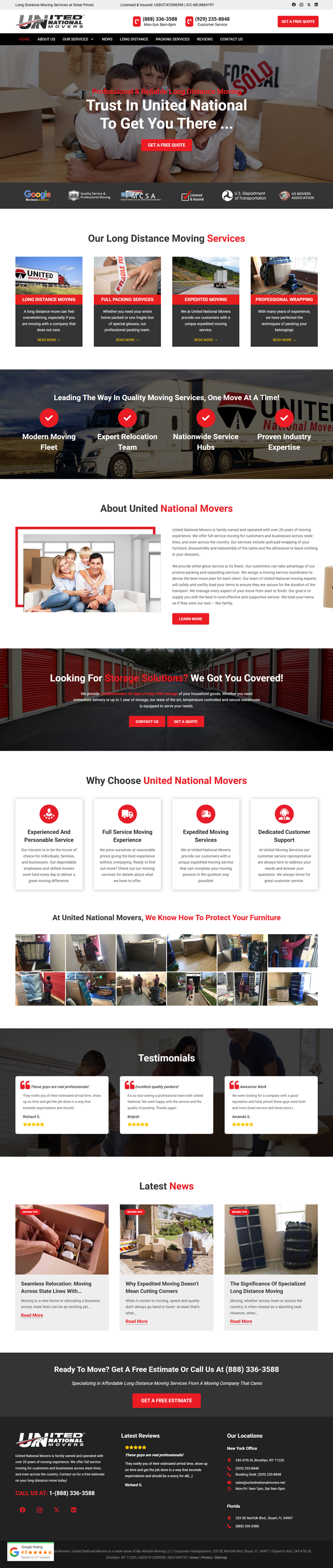 This moving company website design for United National Movers was built with a strong focus on lead generation, local search visibility, and brand credibility. WW Web Design Studios delivered a complete digital transformation, including new website design and branding, logo development, and a scalable SEO architecture tailored for the moving industry.