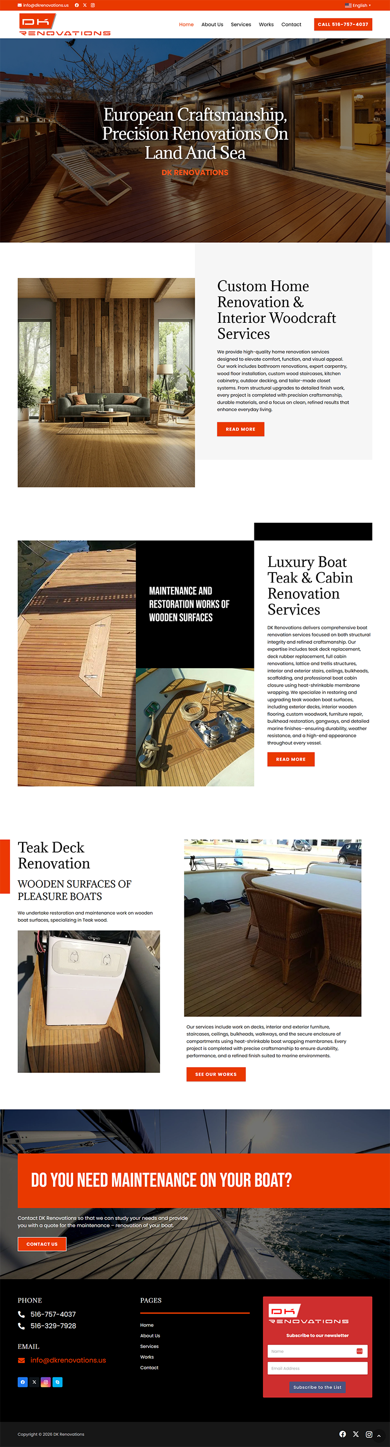 This renovation company website design for DK Renovations was built to position the brand as a versatile contractor serving yacht, residential, and commercial renovation projects. WW Web Design Studios executed a full website redesign combined with SEO optimization to improve visibility, usability, and lead generation.